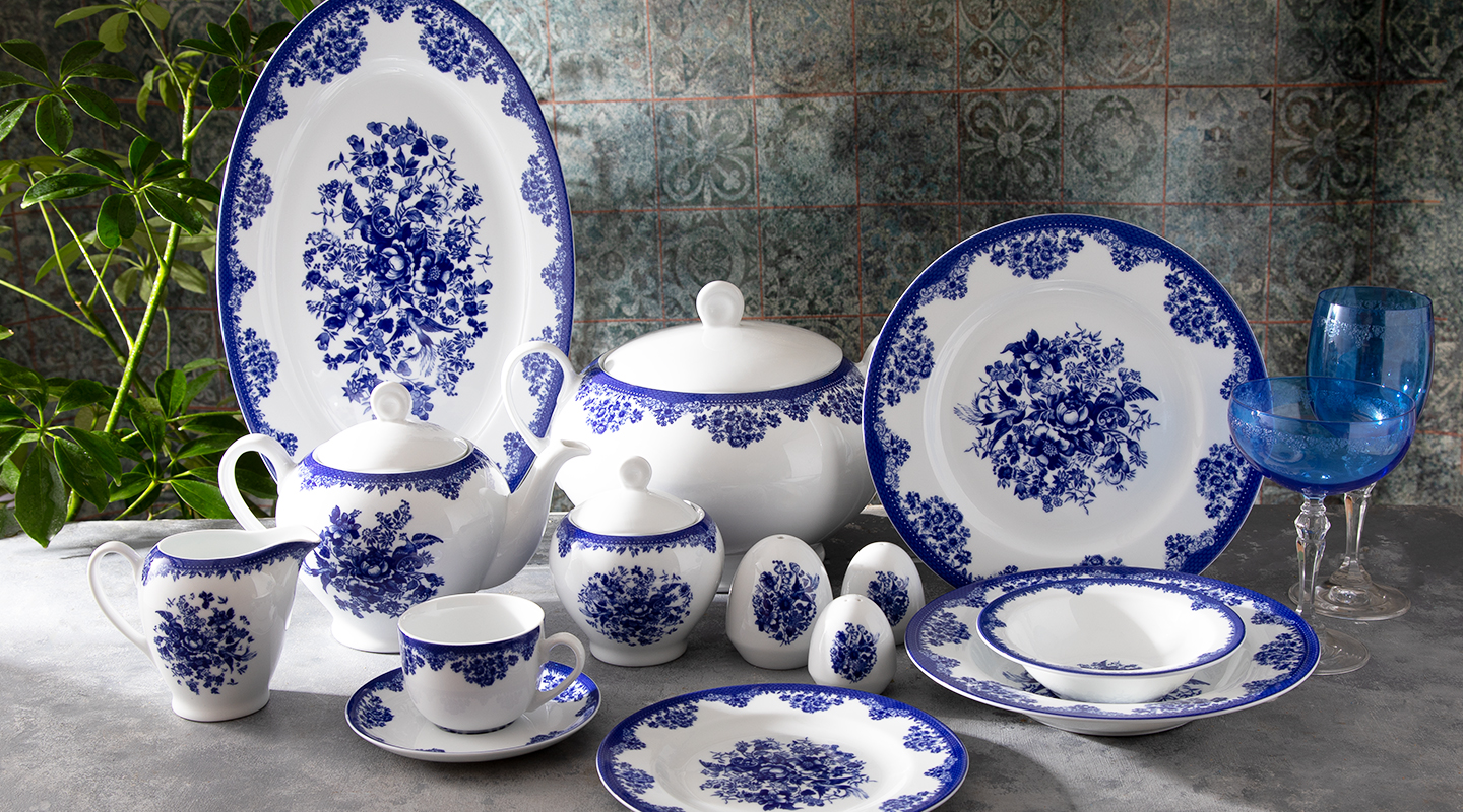 سرویس چینی 102 پارچه ایتالیا اف فلورانس سرمه ای درجه عالی زرین